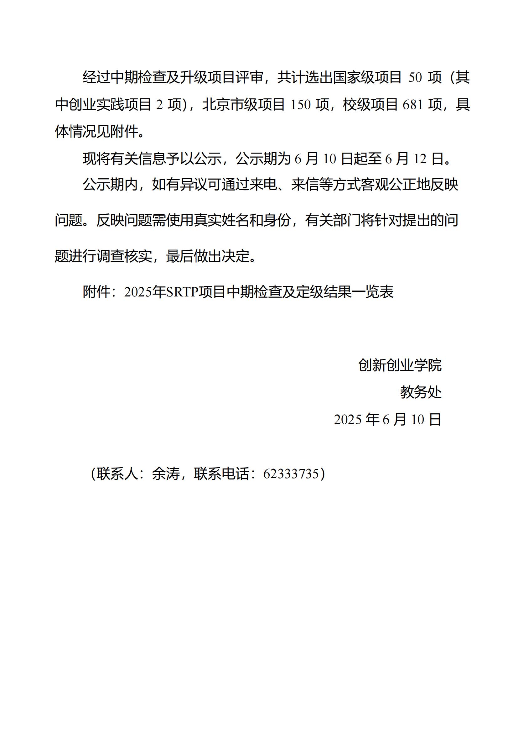 附件:2025年SRTP项目中期检查及定级结果一览表