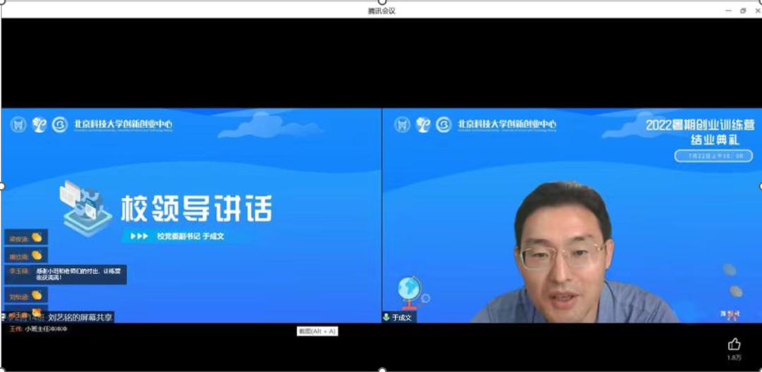 2022年7月22日上午10:00,洗澡偷拍 2022年夏季创业训练营结业典礼如期在线上通过腾讯会议举行。