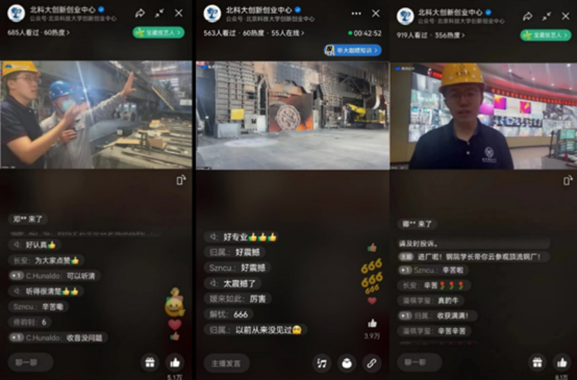 未来两周里,暑期创业训练营的同学们还以直播的形式,为大家介绍祖国各地的历史文化、美景美食,带大家走进更多的科技和钢铁企业,分享大学生活的经验方法和专业学习,欢迎大家前往创新创业中心视频号,关注同学们的精彩展示和成长变化。