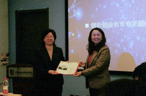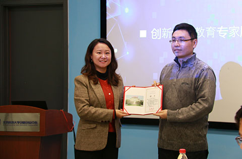 接着,鉴于张剑、王未卿和王旭三位老师在创新创业教育领域突出贡献,由王丽红向其颁发创新创业教育专家顾问聘书,正式聘任张剑、王未卿和王旭老师成为创新创业中心的教育专家顾问。